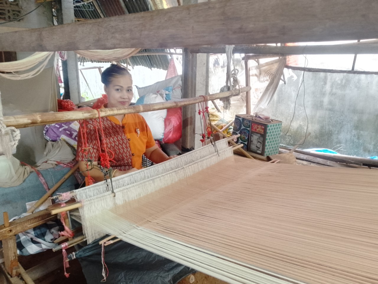 2.ทอผ้าฝ้ายย้อมสีธรรมชาติไม้5อย่างโคลนแม่น้ำฮี้บ้านท่าเชียงเครื่อ หมู่2