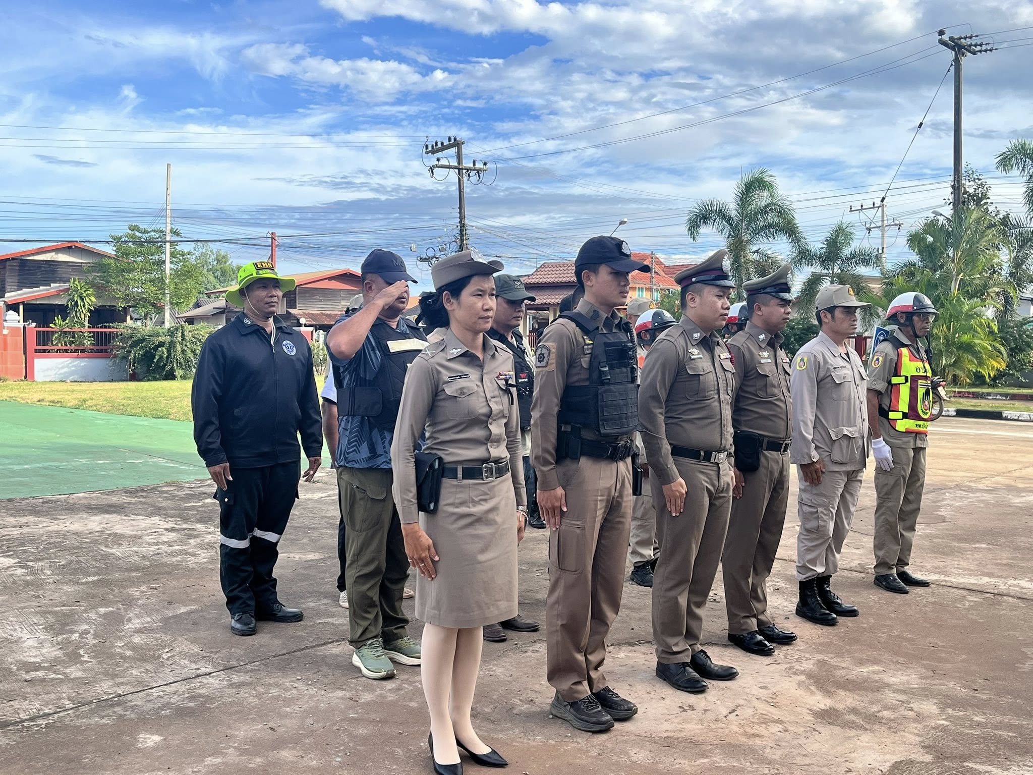 ฝ่ายพลเรือน และหน่วยกู้ชีพฉุกเฉิน ร่วมปล่อยแถวระดมกวาดล้างอาชญากรรมช่วงเทศกาลฯครับ✍🏻