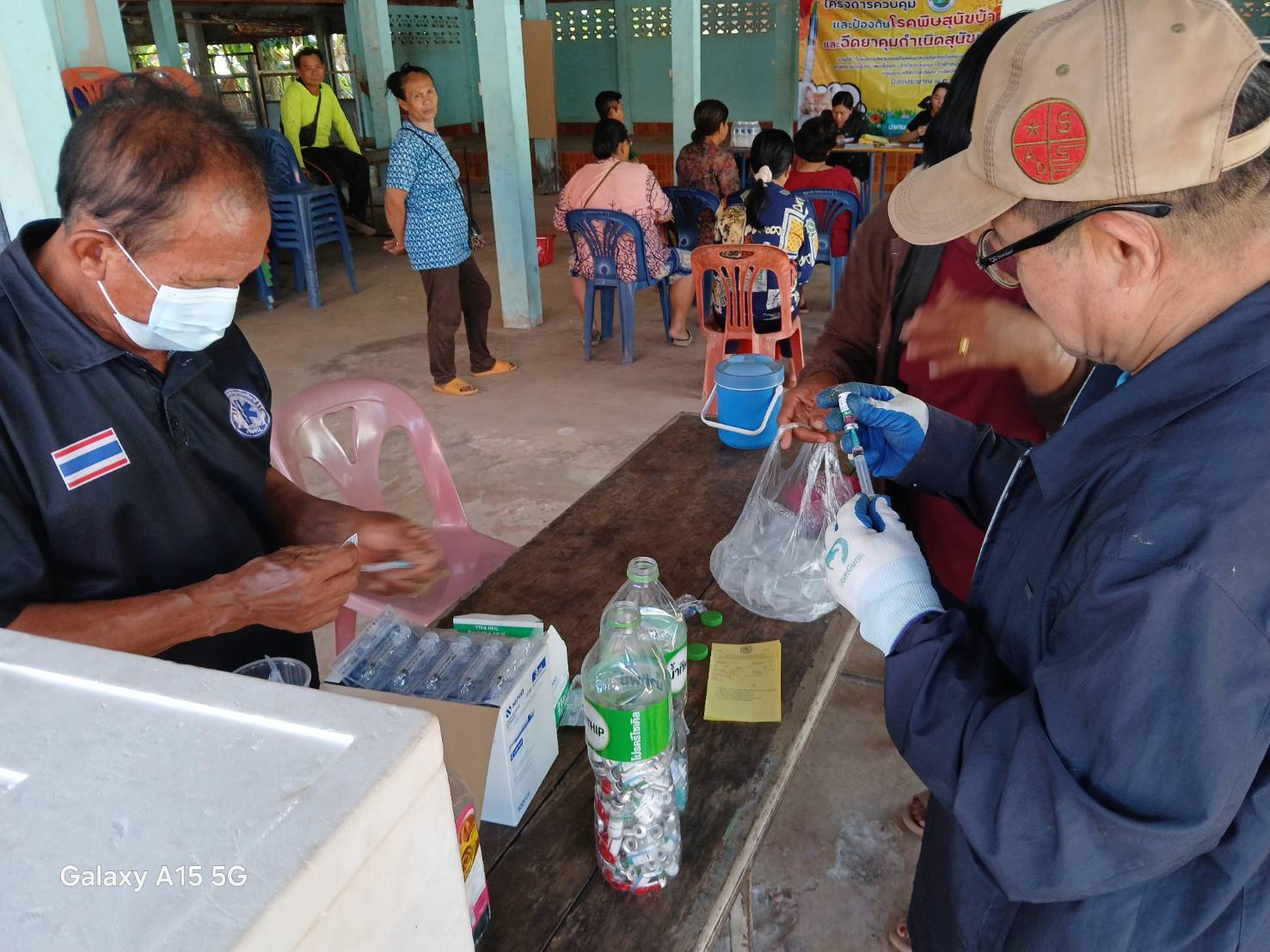 งานสาธารณสุข ร่วมกับอาสาปศุสัตว์ลงพื้นที่ฉีดวัคซีนป้องกันโรคพิษสุนัขบ้า
