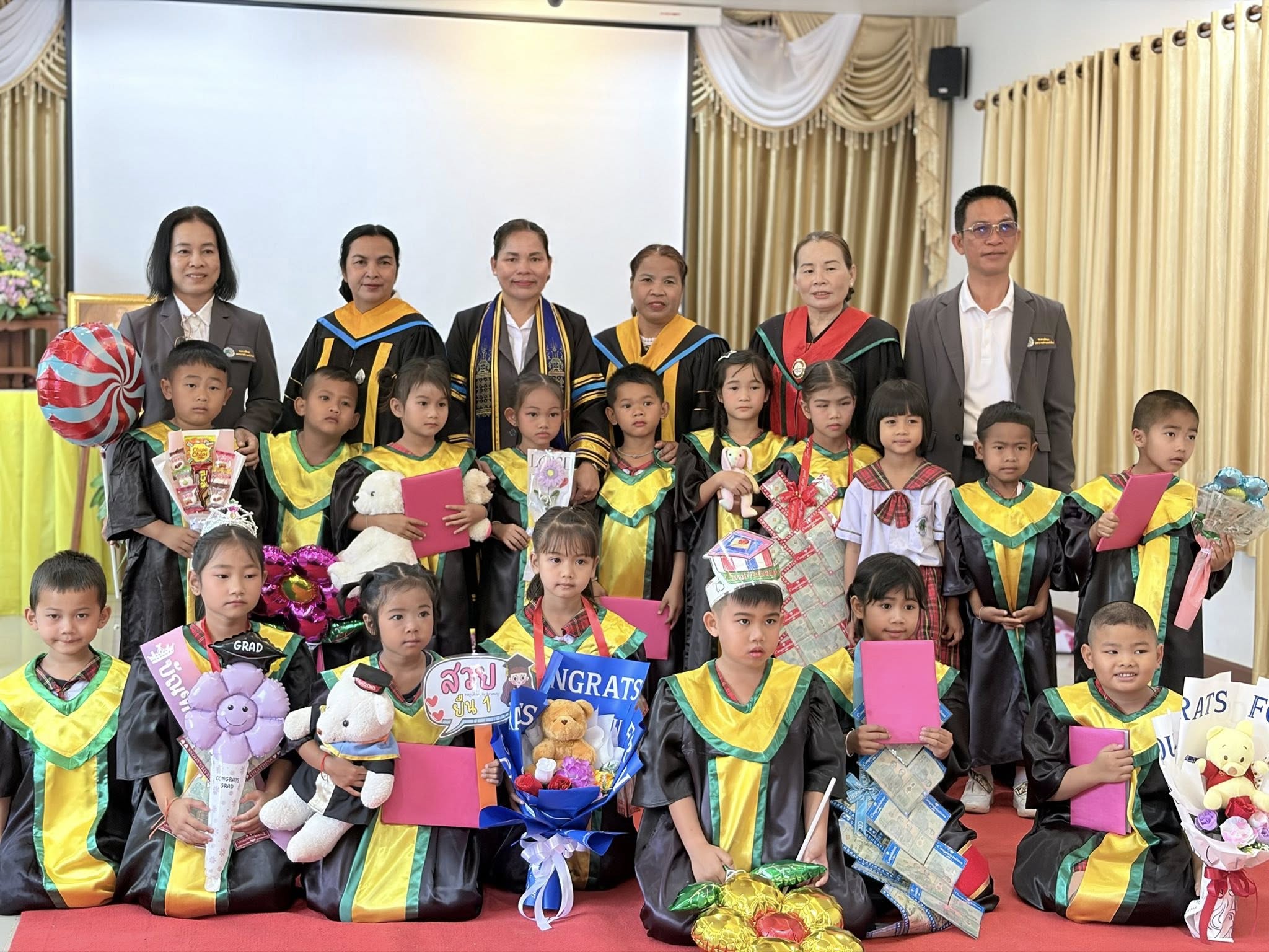 เพื่อแสดงความยินดีกับเด็ก ๆ ที่สำเร็จการศึกษาในระดับปฐมวัย 🎓✨ พร้อมทั้งสร้างความทรงจำที่ดีให้กับเด็ก ๆ ผู้ปกครอง และคุณครู ก่อนก้าวสู่การศึกษาในระดับต่อไป