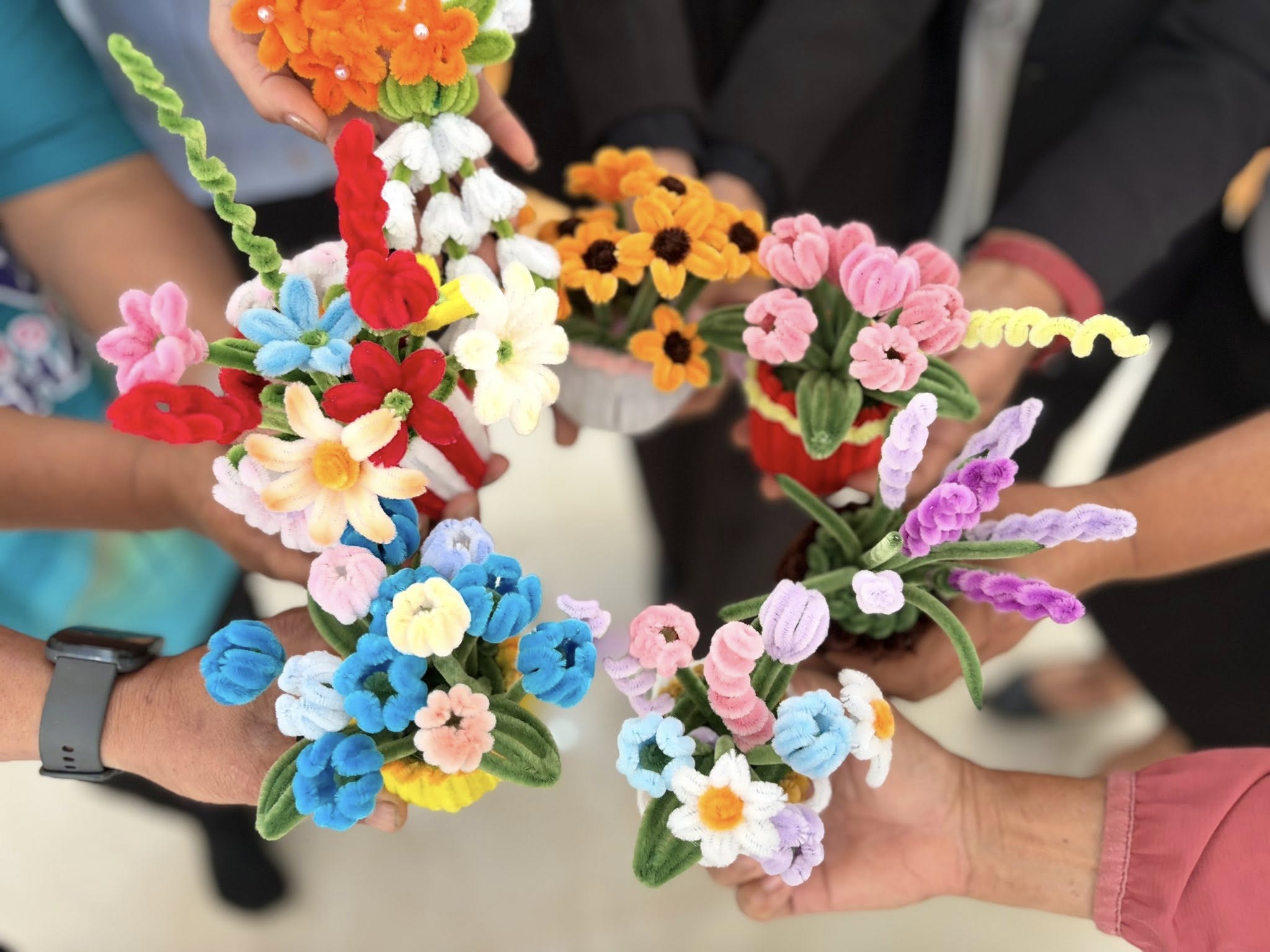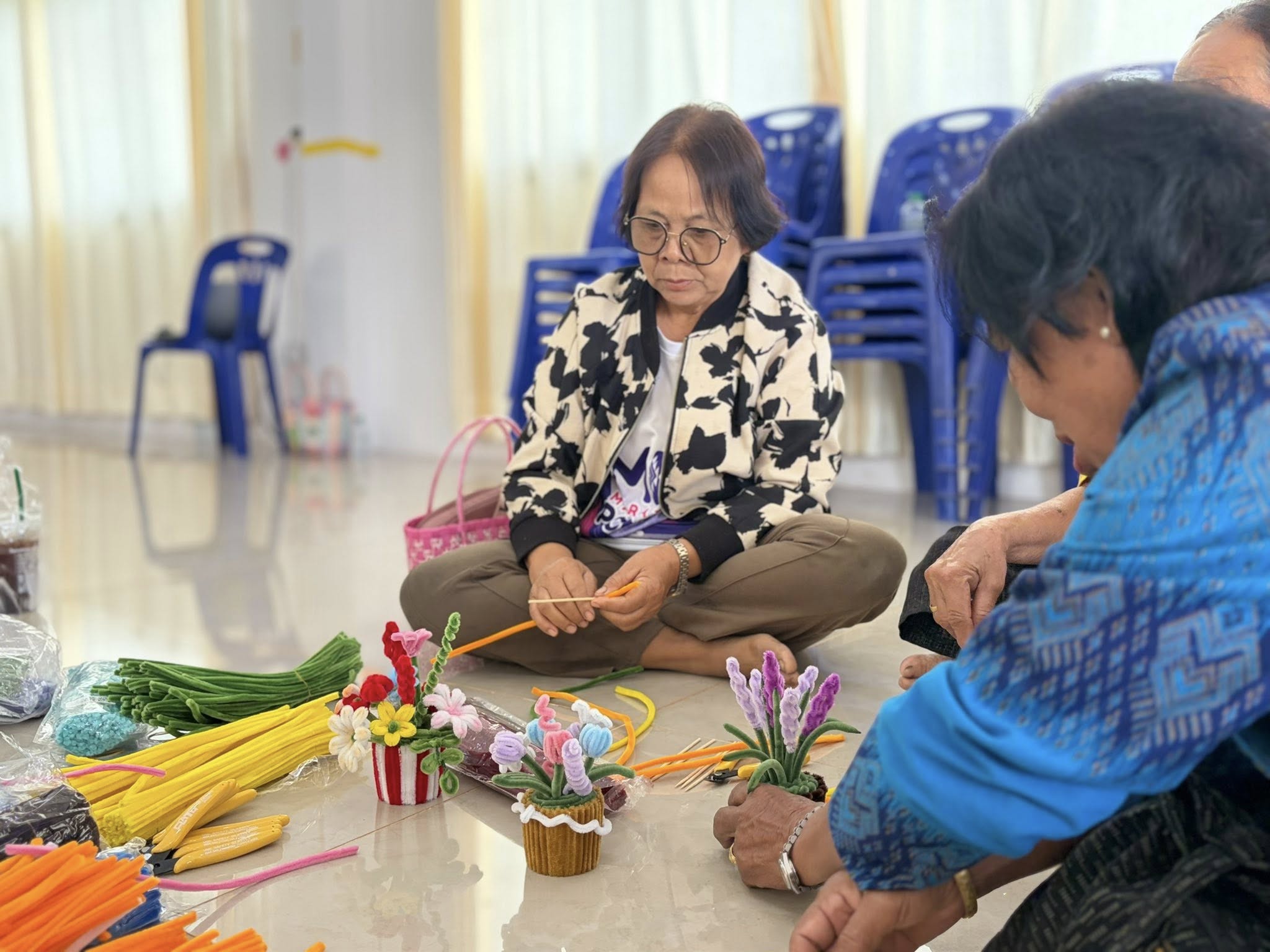 โดยกิจกรรมภายในโครงการ เป็นการ อบรมเชิงปฏิบัติการการทำสิ่งประดิษฐ์จากลวดกำมะหยี่ ซึ่งเป็นงานฝีมือที่สามารถนำไปต่อยอดเป็นอาชีพหรือสร้างรายได้เสริมให้กับครอบครัวได้ อีกทั้งยังเป็นการส่งเสริมการใช้เวลาว่างให้เกิดประโยชน์ สร้างความภาคภูมิใจในตนเอง และเสริมสร้างความเข้มแข็งให้กับกลุ่มผู้สูงอายุในชุมชน 🌼🧶🌷