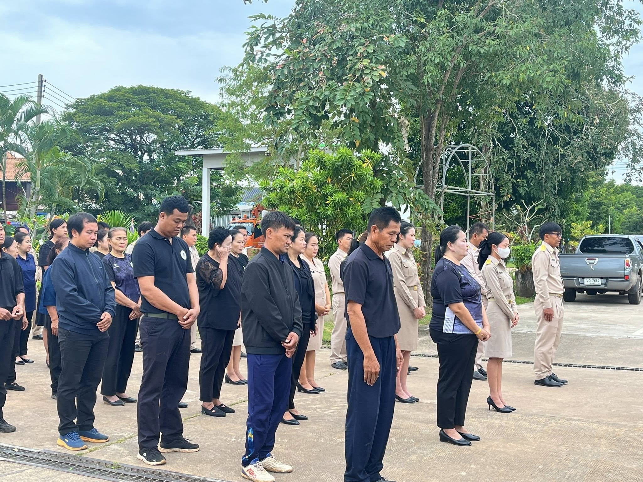 🎗️เทศบาลตำบลป่งไฮ🎗️ มีการเชิญธงชาติไทยตามปกติ ที่หน้าตึก ก่อนจะลดธงลงครึ่งเสา ขณะที่ข้าราชการ เจ้าหน้าที่ พนักงานลูกจ้าง ต่างพากันสวมชุดสีดำ เพื่อแสดงการอาลัยสมเด็จพระนางเจ้าสิริกิติ์ พระบรมราชินีนาถ พระบรมราชชนนีพันปีหลวง ซึ่งเสด็จสวรรคต🤍🖤 #การไว้ทุกข์และลดธงครึ่งเสา